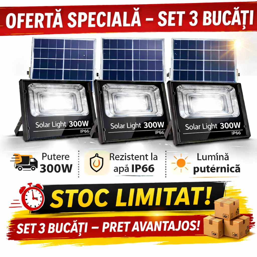 3 x Proiector LED Solar 300W